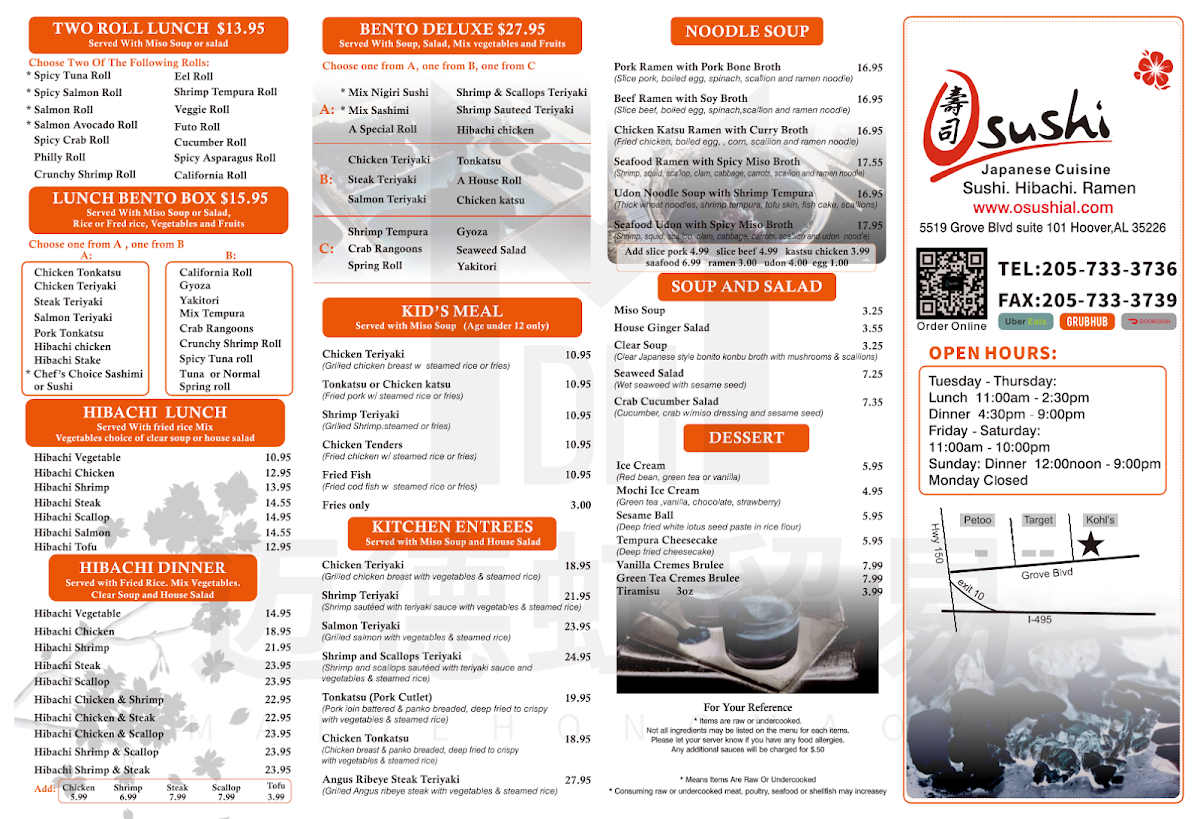 Welcome to O Sushi Hoover, a hidden gem nestled in Hoover, Alabama, offering an exquisite sushi dining experience that elevates traditional Japanese cuisine. Located at 5519 Grove Blvd, this establishment shines through its commitment to freshness and presentation.